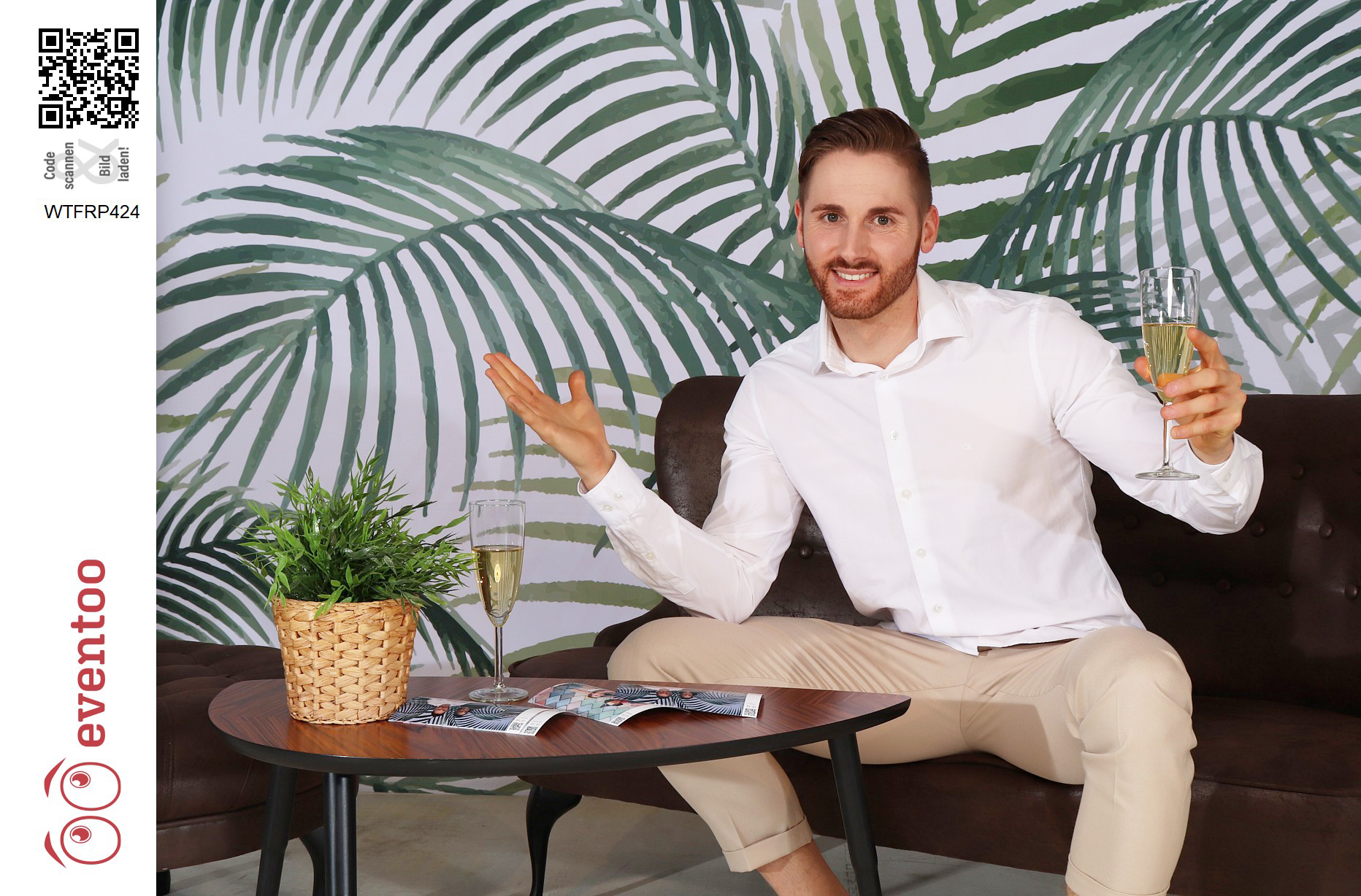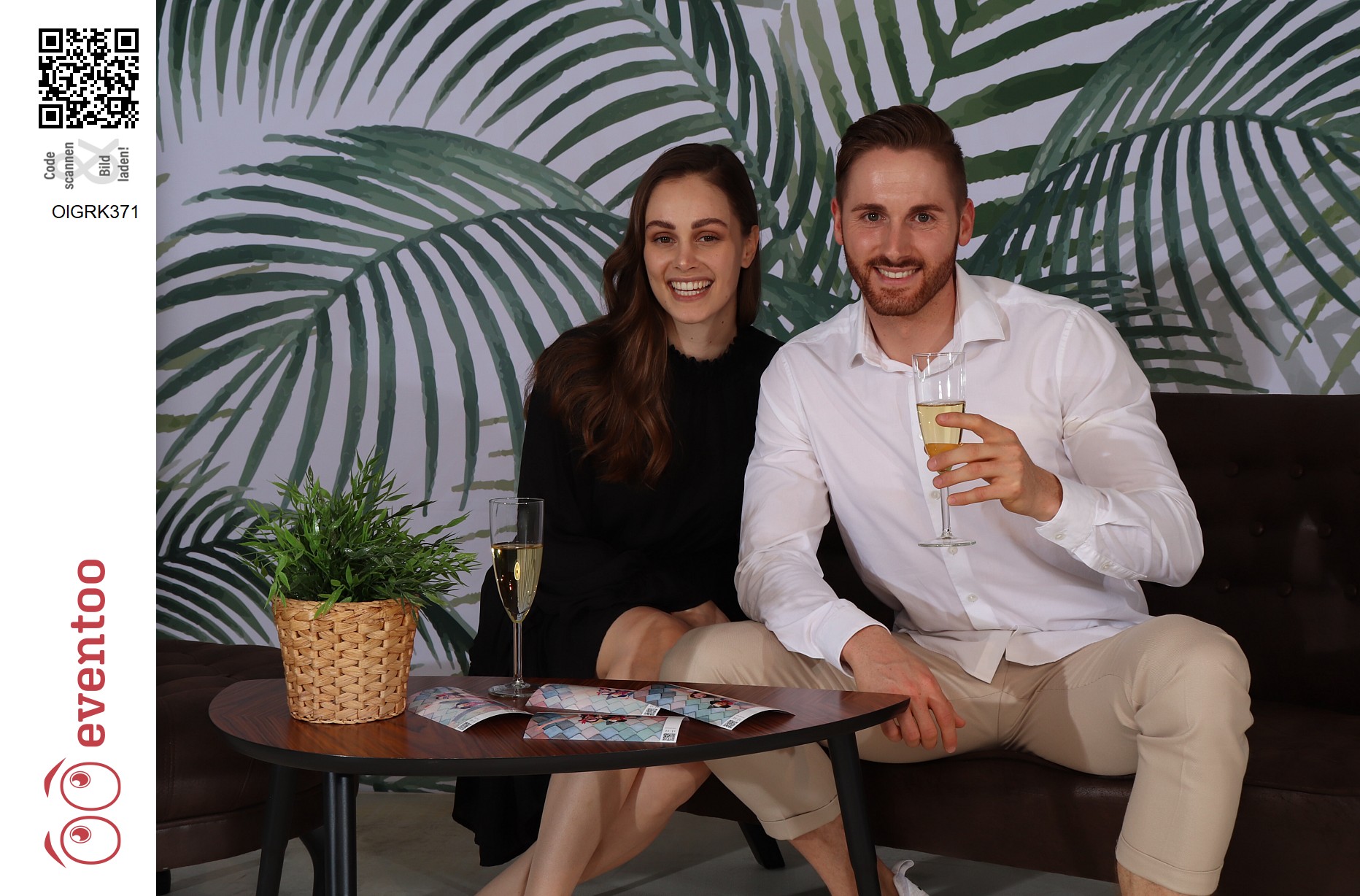 Die Fotos können von der fotoBOOX automatisch mit einer digitalen Maske versehen werden. Diese digitale Maske kann für ein Branding mit Logo oder Claim oder eine kurze Werbebotschaft genutzt werden – oder auch einfach das Event erwähnen, auf dem sie geschossen wurden.